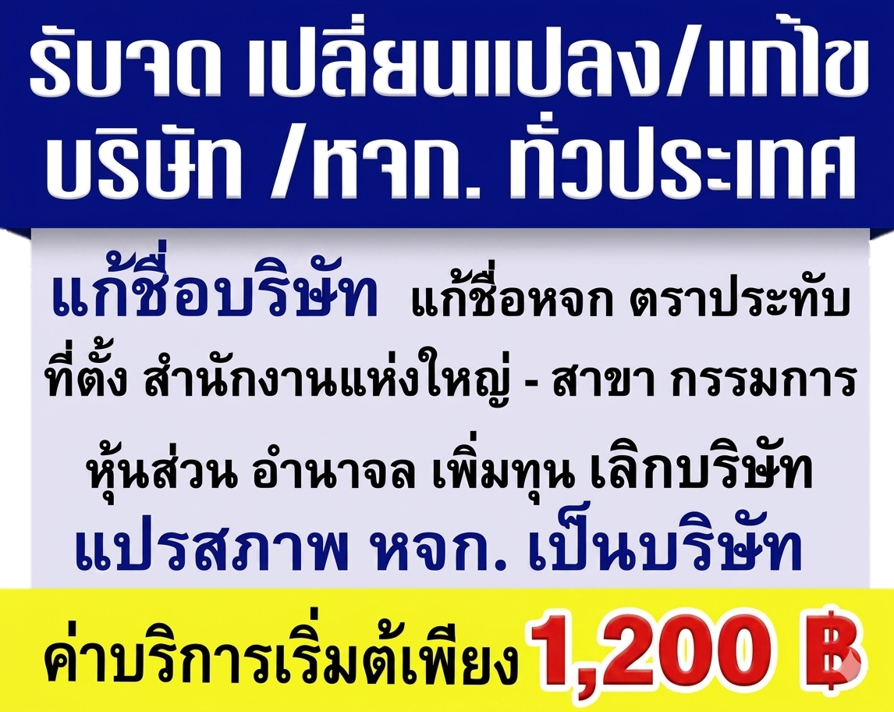 | รับจดแก้ไขเปลี่ยนชื่อบริษัทราคา | 1,500 บาท |